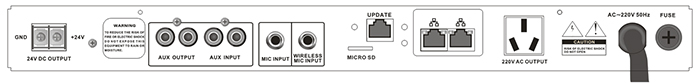 ●具有兩路不同靈敏度的話筒輸入口,方便用戶接入高靈敏度的會議話筒,無線話筒,或者低靈敏度的普通有線話筒。